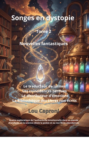 Ce recueil contient quatre longues nouvelles dystopiques, chacune centrée sur une exploration des émotions, de la créativité et des mécanismes invisibles qui façonnent la destinée humaine. Chacune interroge une facette particulière du lien entre l’intime et les systèmes qui cherchent à le dominer.